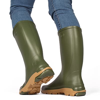 • Takket være dens PVC-sammensætning er støvlen naturligt slidstærk og holder længe.